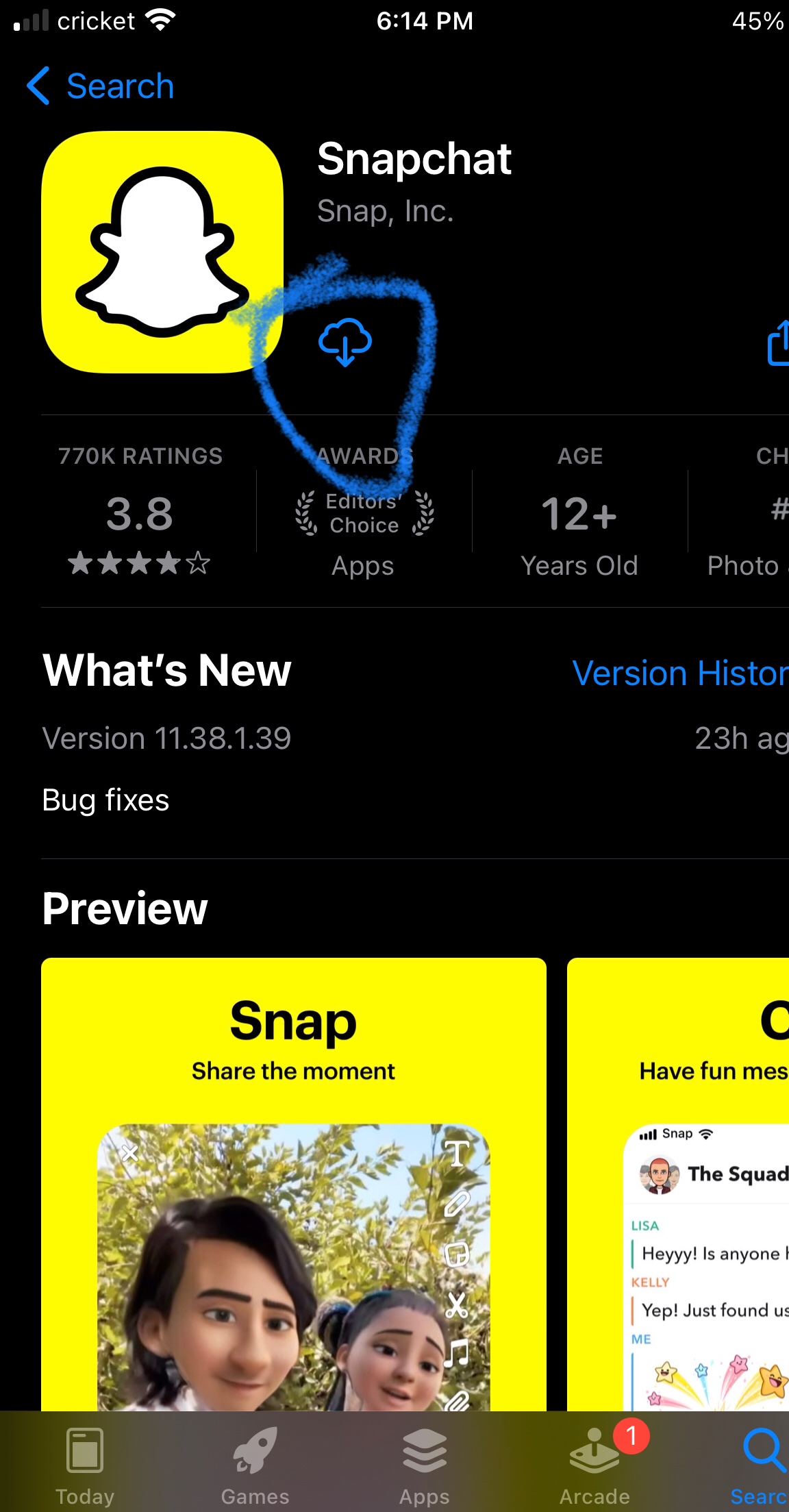 Im having trouble redownloading my snapchat everytime i click that button jt loads and stops and wknt work