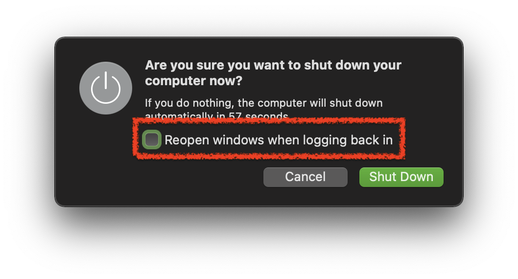 How to prevent programs from opening during startups? Everytime I open my Mac, there are programs that automatically opens. Usually the last program I used before turning off my Mac. What i usually do is to use force quit everytime I'm done using my Mac.