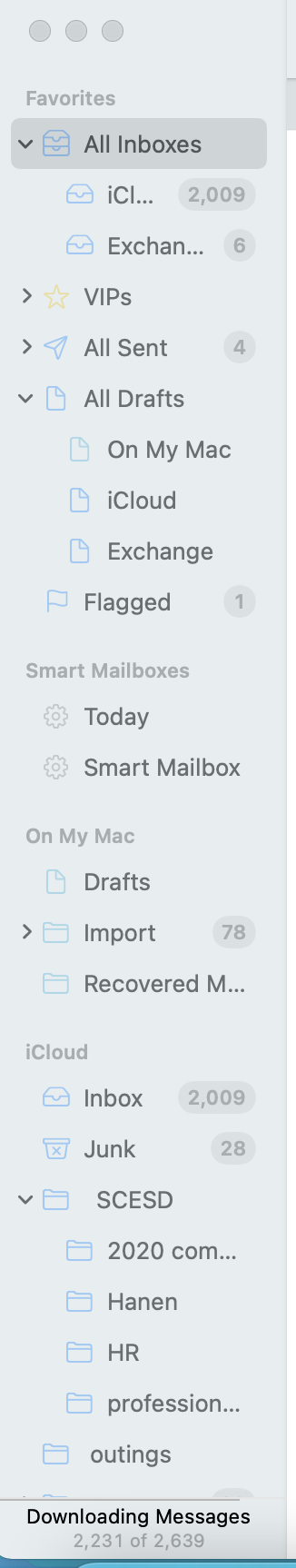 I had an inbox on my mac (MacBook Pro, ver. 11.5.1). I reactivated the Exchange Inbox. I saw a message that messages were being downloaded. I also saw that there was no longer an inbox on my Mac. Suggestions?