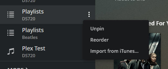 - I clicked the three dots and all I see were two options "unpin" and "Reorder". No import iTunes playlists.