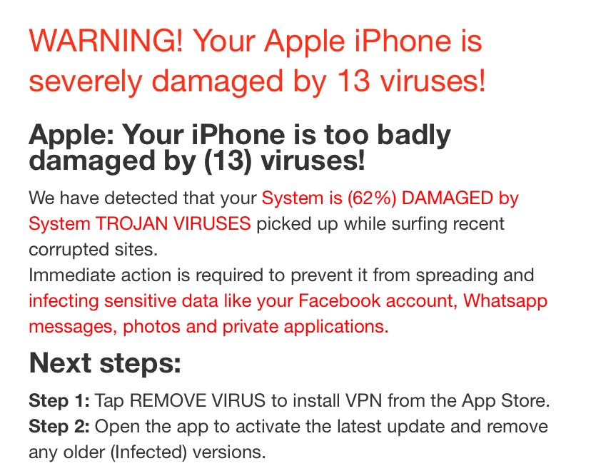 My IPhone 11 says I have the Trojan virus and my stuff keeps freezing and glitching.