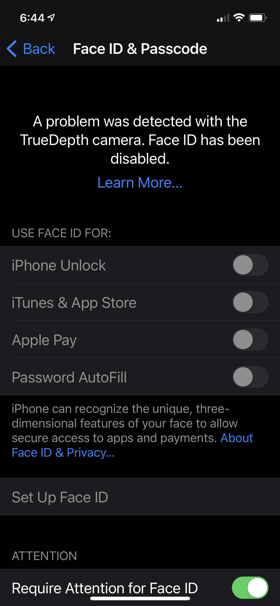 Face ID is disabled. Not working after update