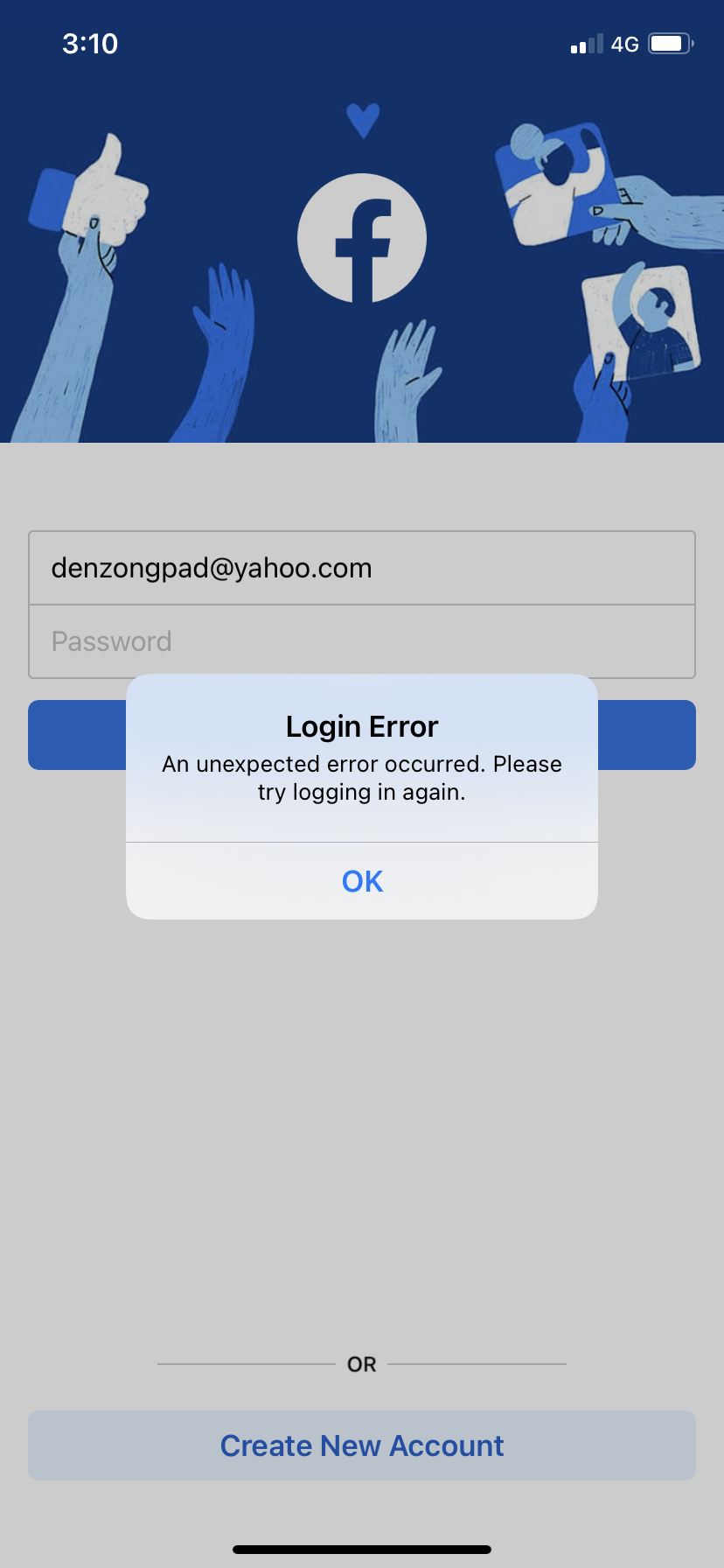 Unable to log in Facebook by app, try all the suggestions but all in vain