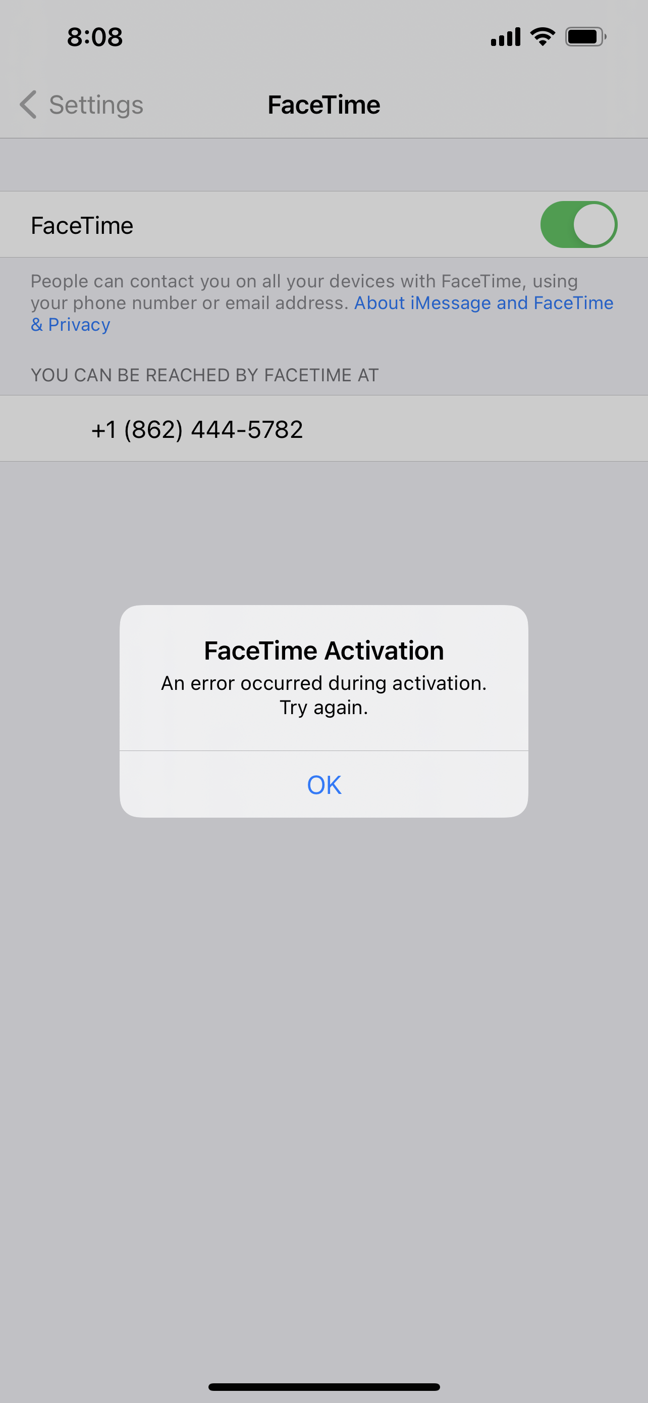My phone will not allow my iMessage nor FaceTime take my actual phone number just email