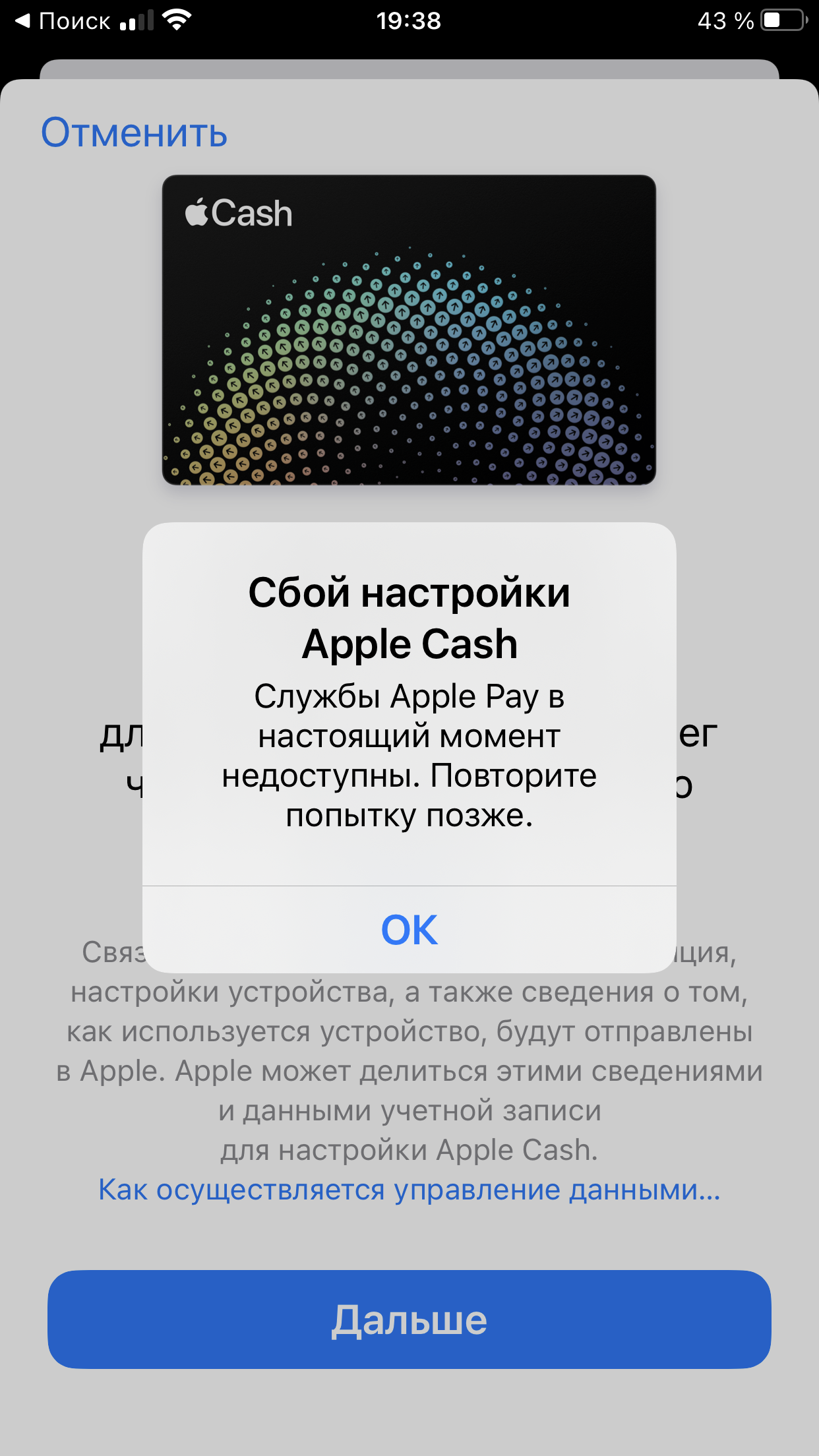 I am unable to turn on Apple Cash. It says: Apple Pay service is currently unavailable - try later.