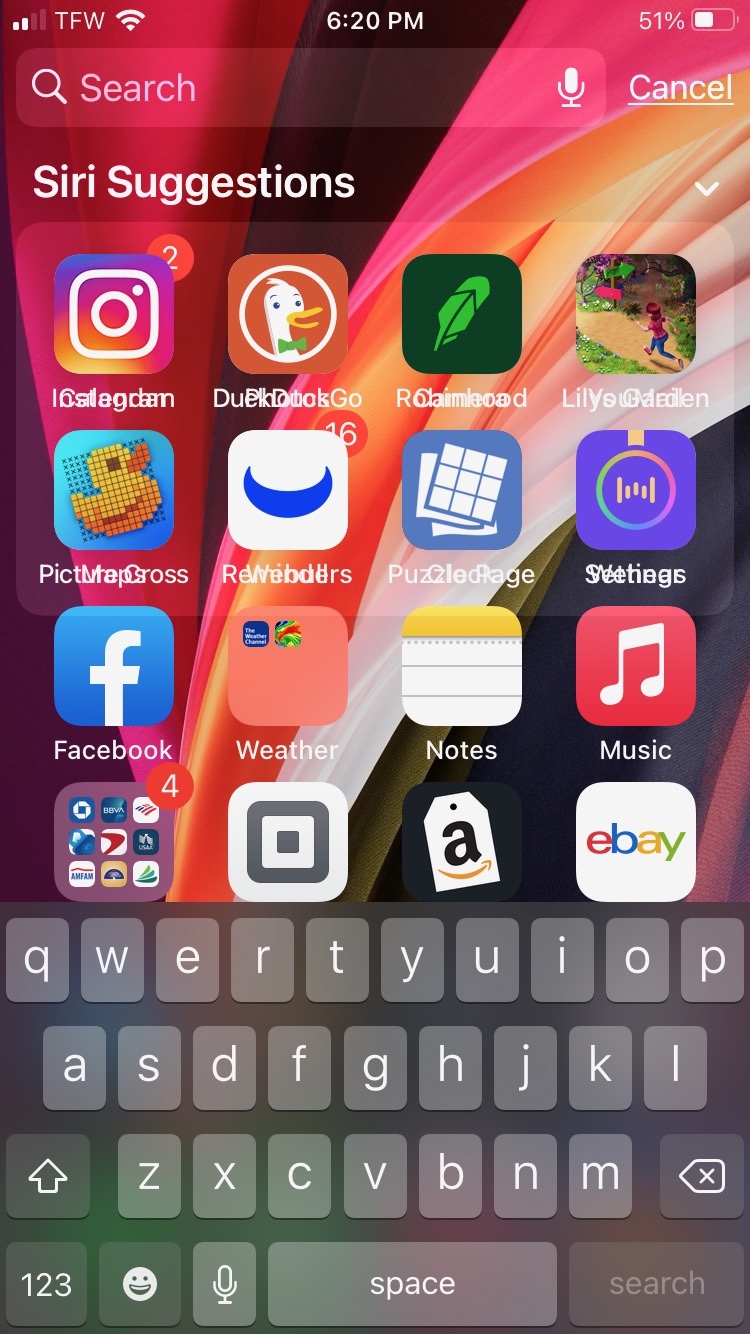 When I use swipe down to search my background apps show through and I can’t read the suggestions