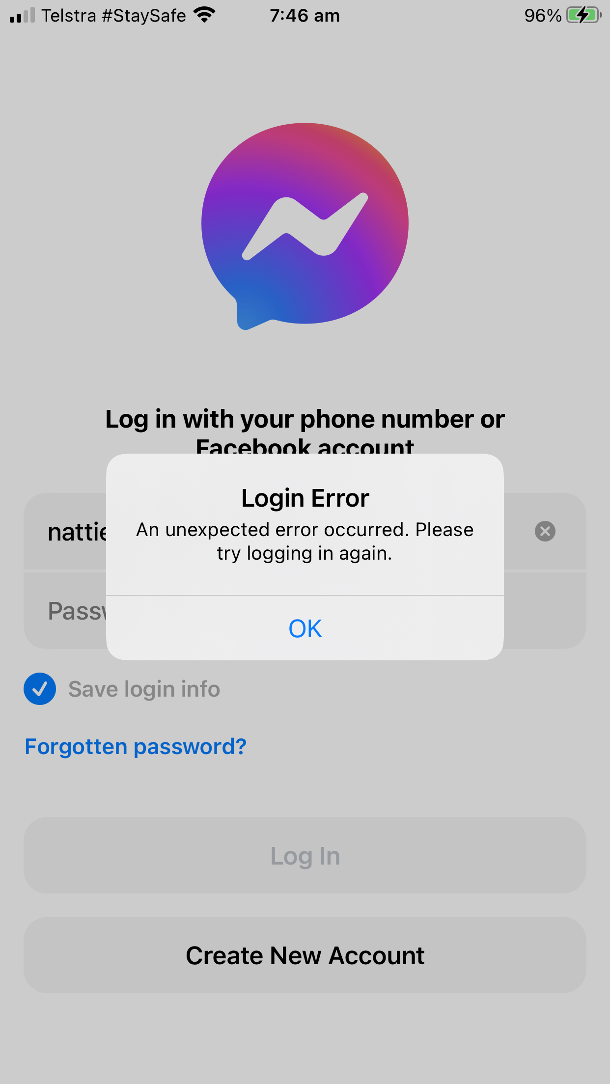 I can login to my messenger and Facebook apps via my family members phone, but I’m unable to sign in from my phone. It keeps coming up with an error message. This has been like this for a very long time and I can’t find any answers or solutions. Someone please help me.