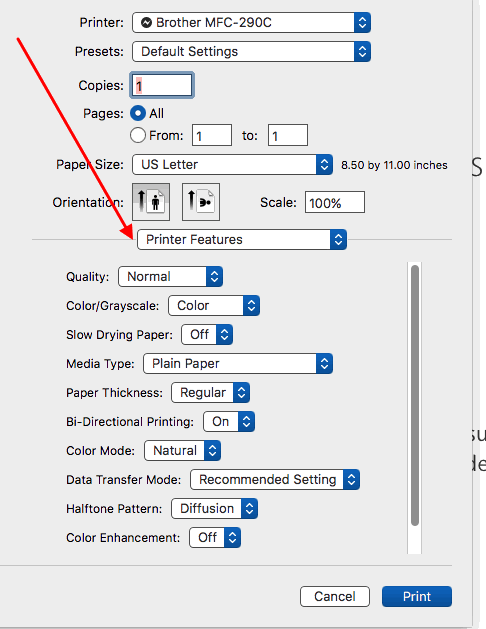 Has anyone had this problem? Is it because her iMac is so old? I just can't imagine why the WiFi connection works to print color, but the USB connection doesn't. Her computer, while old, seems to be working perfectly otherwise. I'd like to get it connected via USB - but she needs to be able to print color. There may have been other features unavailable on the print screen, as well -- I didn't fully check it out.