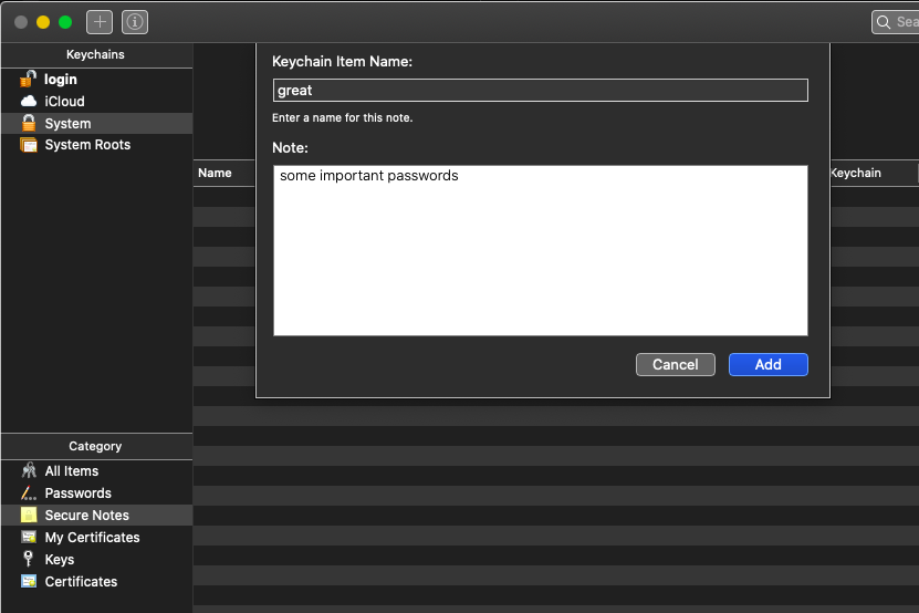 I made some secure notes (beveiligde notitie) in the Keychain (Sleutelhanger) app but they are shared with my other Mac. In my iCloud settings, the Keychain app is checked for synchronization. What do I have do to do to get it shared?