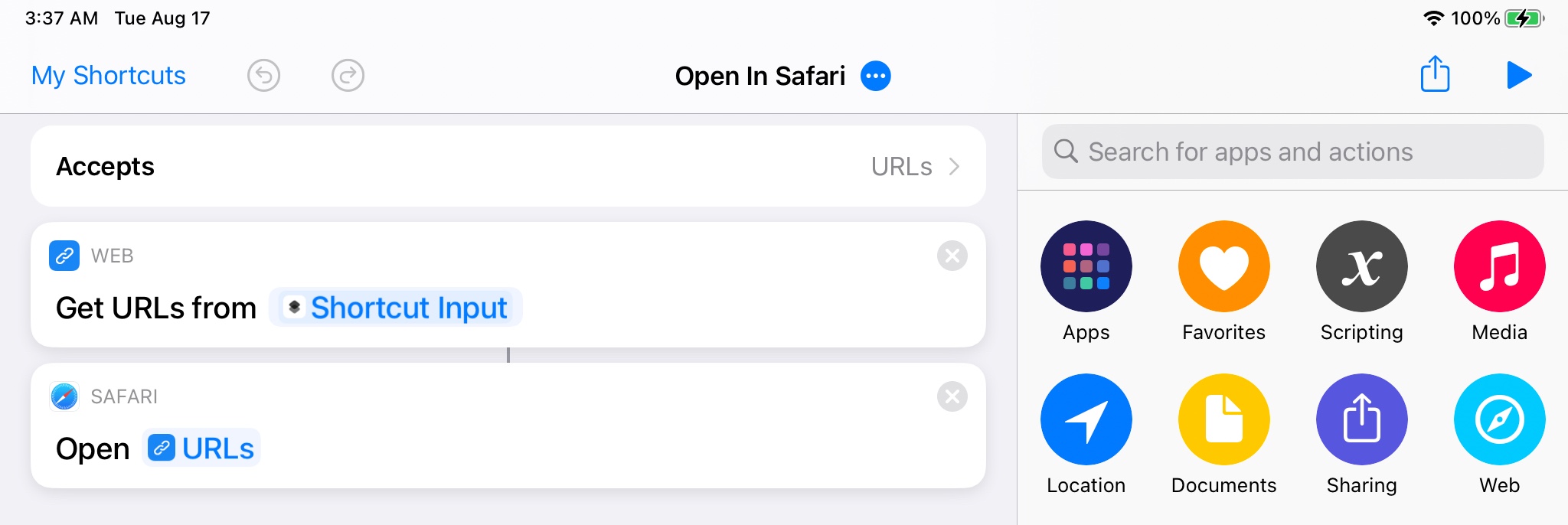 The Open In Safari shortcut is very simple.
