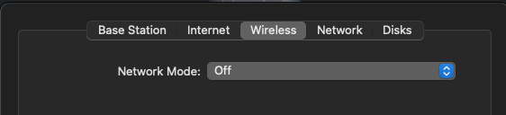 If you do not need the additional wireless network signal that the AirPort Time Capsule produces, you can select the Wireless tab in AirPort Utility to turn off the WiFi function on the Time Capsule, so that it will operate only as a wired hard drive.