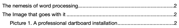 I am going CRAZY here. I have several full page images to add to a word processing document. I've tried everything but I cannot get them to show up in the Table of Contents. I can add them no problem but they simply do not show up in the TOC. I've been googling for hours. It's driving me mad can anybody help????