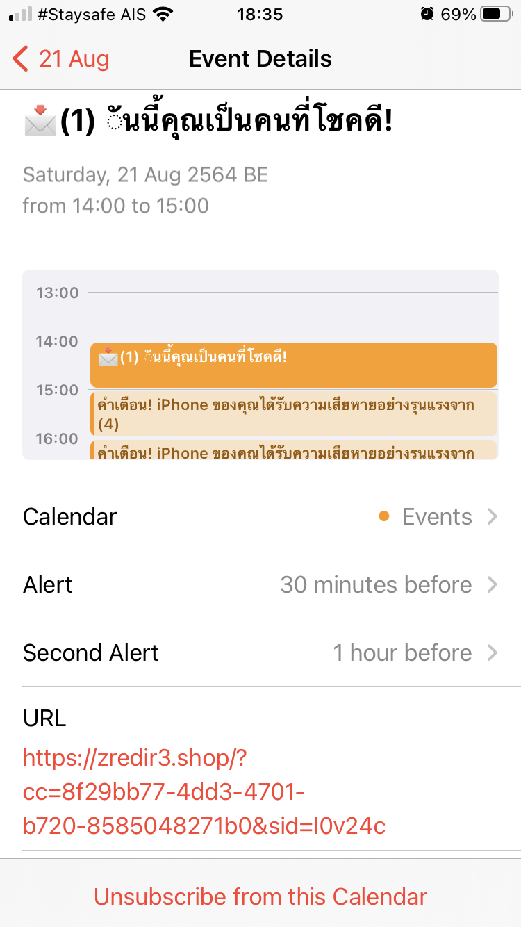 But today suddenly my calendar alert a message as this pic and i click unsubscribe it. Just want to confirm if my phone is safe. This is first time i got alert in my calendar.