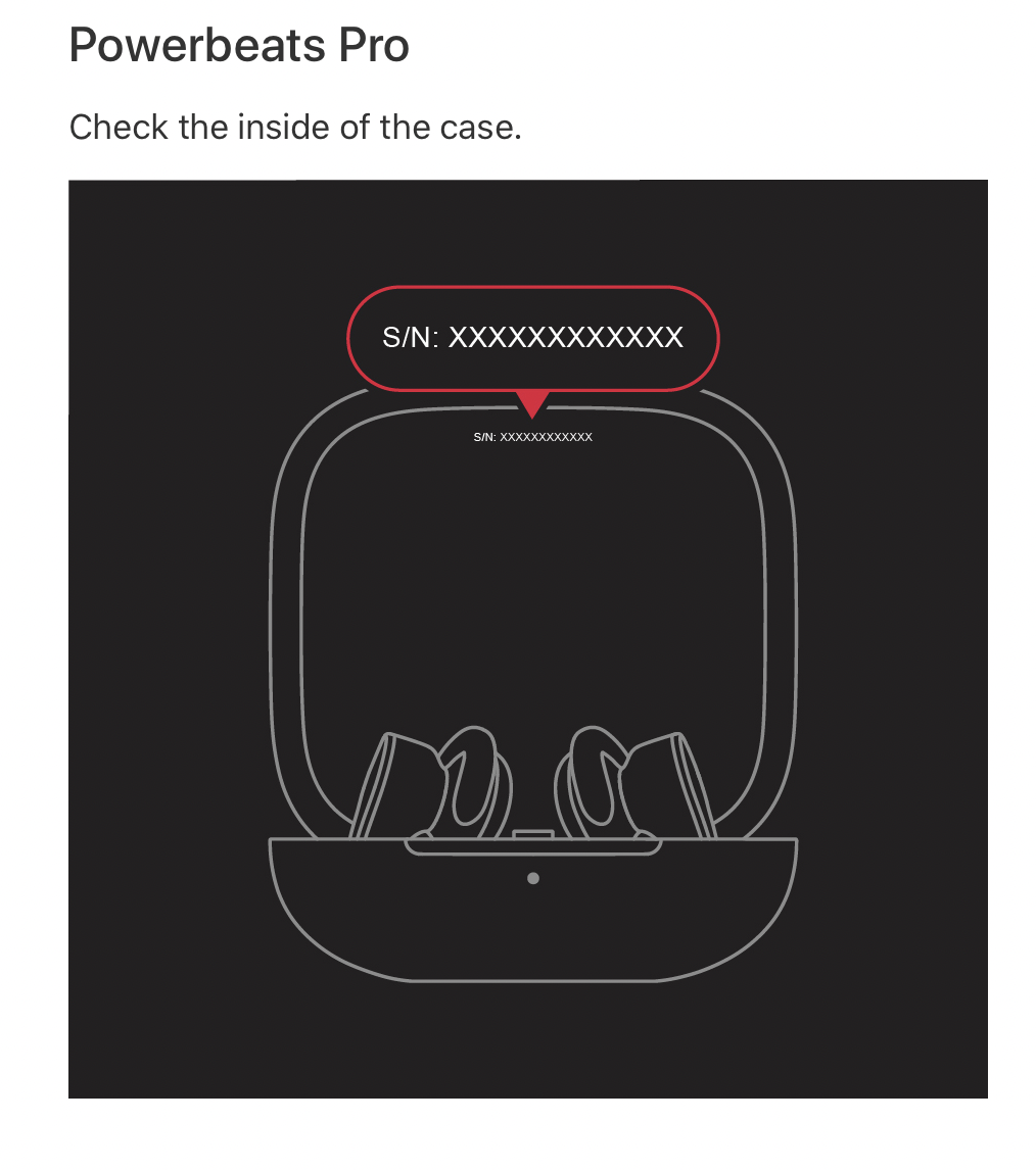how can i find the serial number of powerbeats pro if none of the suggested means works?