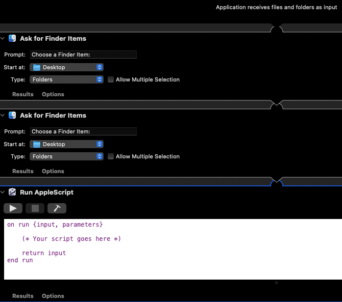 Notice I have changed the Ask for Finder Items Type to Folders.