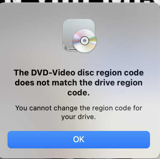 When selecting an older DVD disc that previously played without errors, this notice appears stating “The DVD-Video disc region code does not match the drive region code.  You cannot change the region code for your drive”.