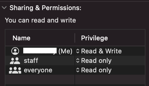 Today I noticed my Home Folder has Sharing & Permission privilege that I did not expect to see (pictured below). The folders inside my Home Folder only list me with read/write privilege and "everyone" with no access. All files and folders inside have the same access pictured below. This also includes everything inside my iCloud Drive.