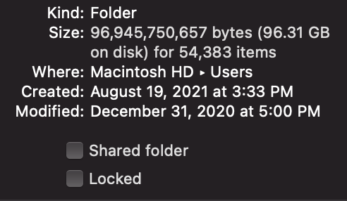 Another thing I find odd is the general info for my Home Folder. The created date is more recent (the date I erased and re-downloaded macOS) than the modified date. I am not sure what occurred 12/31/2020 on my computer. Additionally all the built in applications and most system files show the created and modified dates as 01/01/2020 but I do not know why, the model is from late 2015.