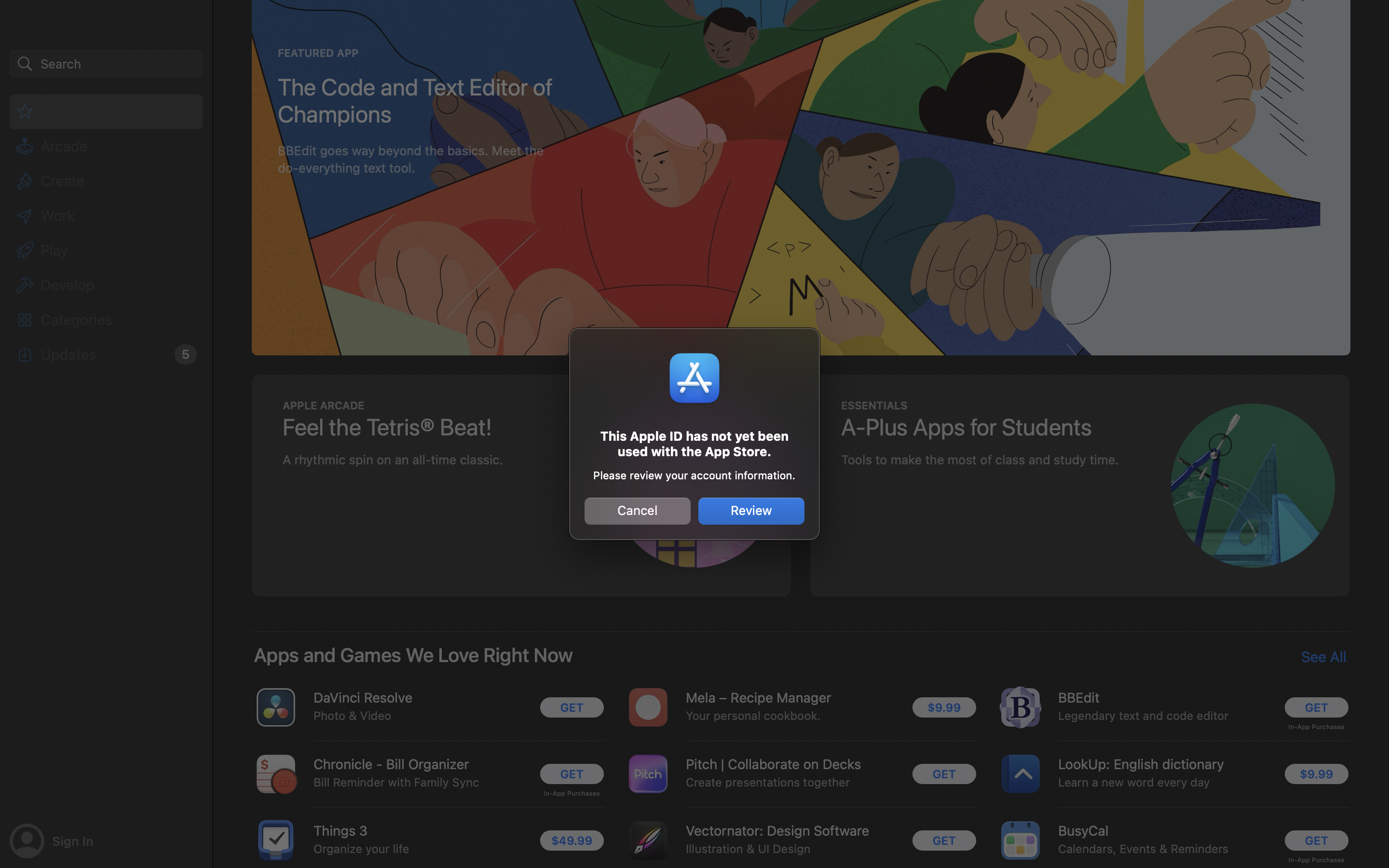 Cannot sign in to the app store with my apple id in mac air m1 (new user).