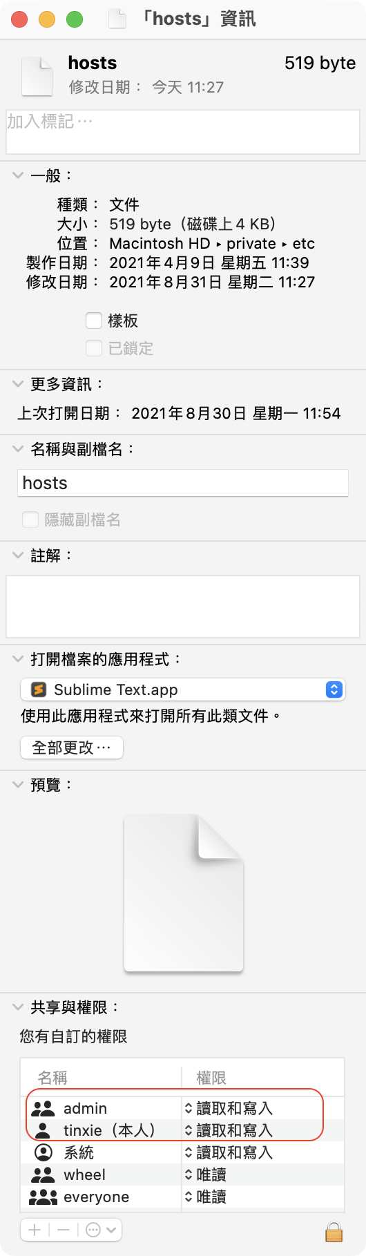 Use sublime Text app to edit the hosts file (/private/etc/hosts), and an error prompt window like this appears. Nothing like this happened a few days ago. After using the restore system, it returned to normal, but the same problem occurred a few days later.