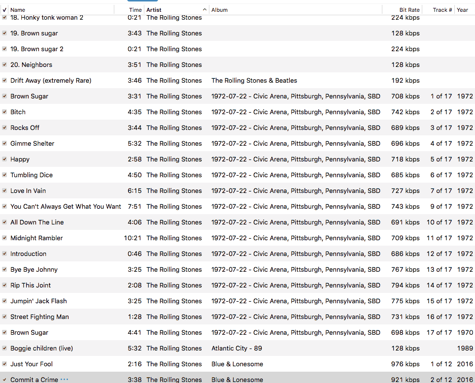 Likewise for the Blue & Lonesome album, iTunes had added artist > sort as: Rolling Stones, The
