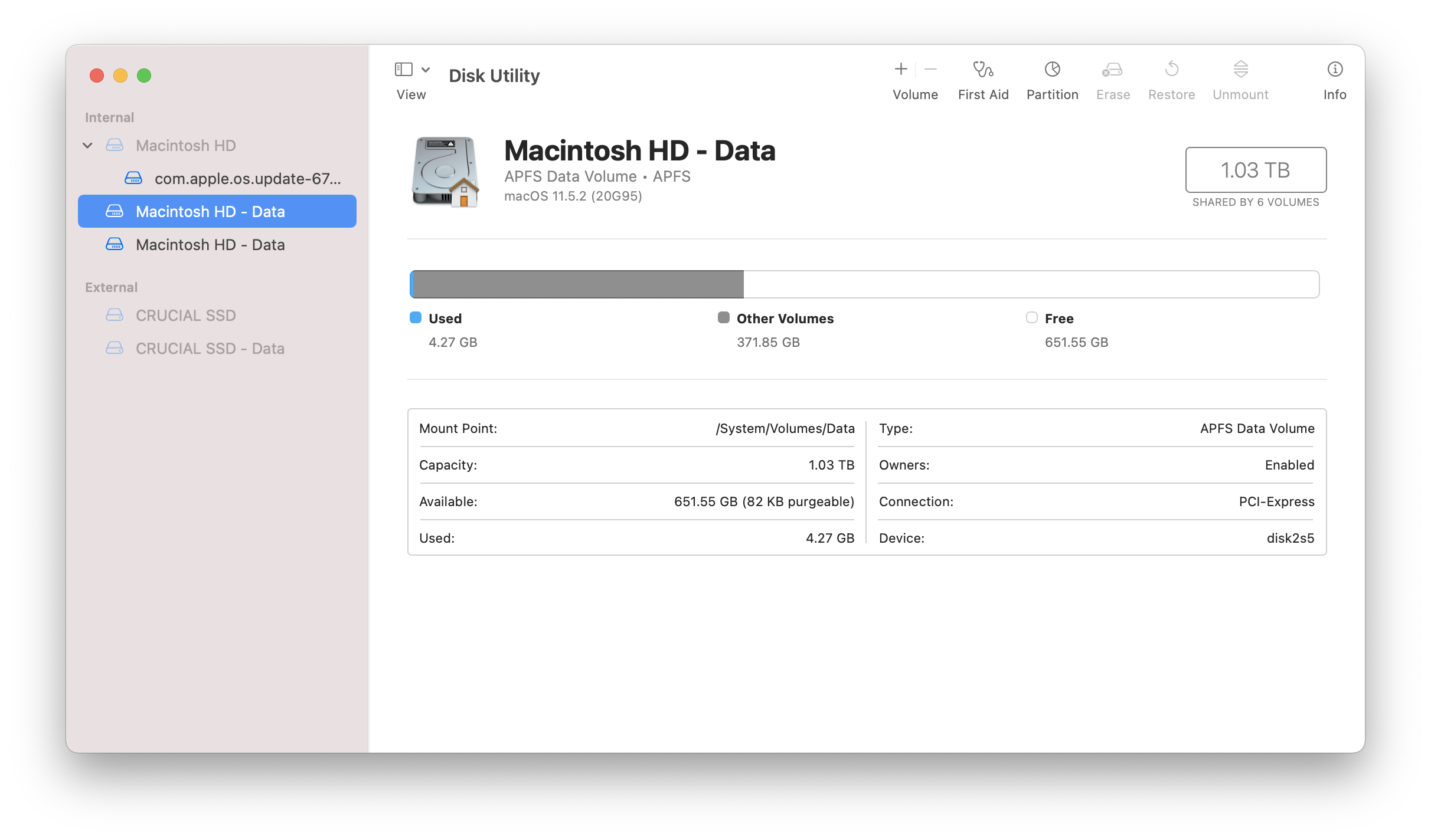 So I continued to install Big Sur on my iMac which succeeded except for one thing. . . . although there was no sign of all the data that had been on my Mac, it now appears that I have 2 Mac HD-Data volumes, one with only 4.27GB used and the other with about 349GB used.