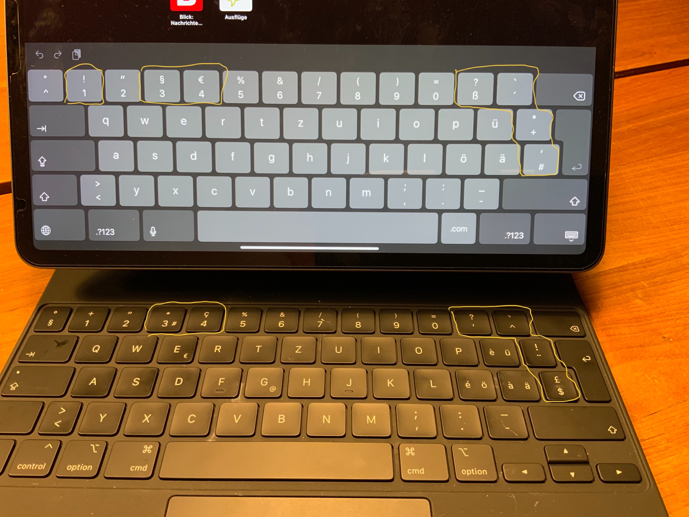 Why are the ! on the iPad Pro 4 gen keyboard and magic keyboard in different places ? (and other keys for that matter)