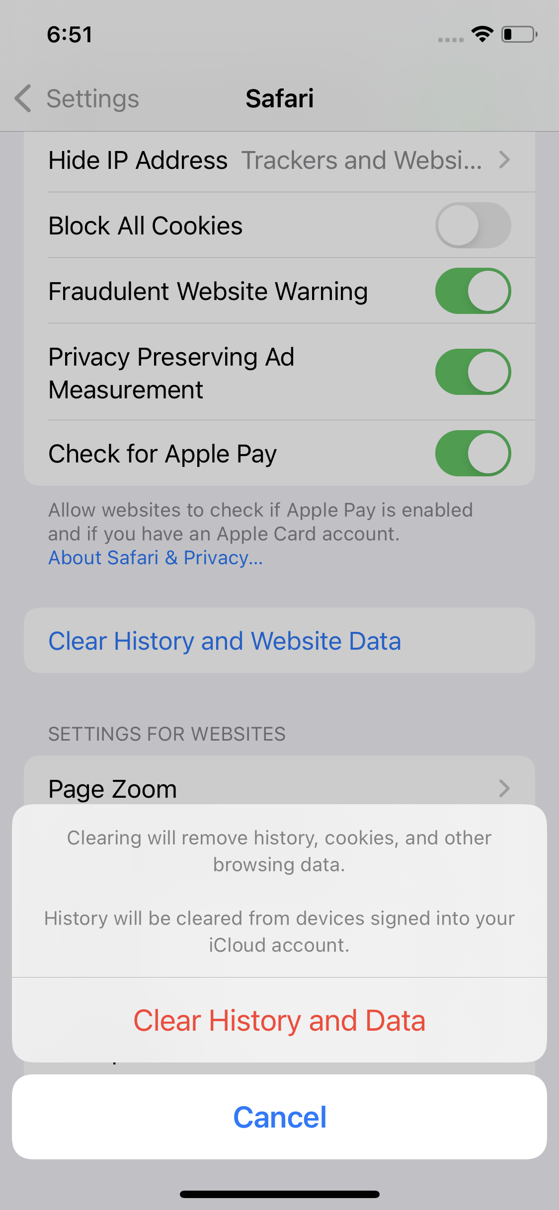 I saw that the Clear Cookies and Website Data in Safari Settings was Grey. Why?