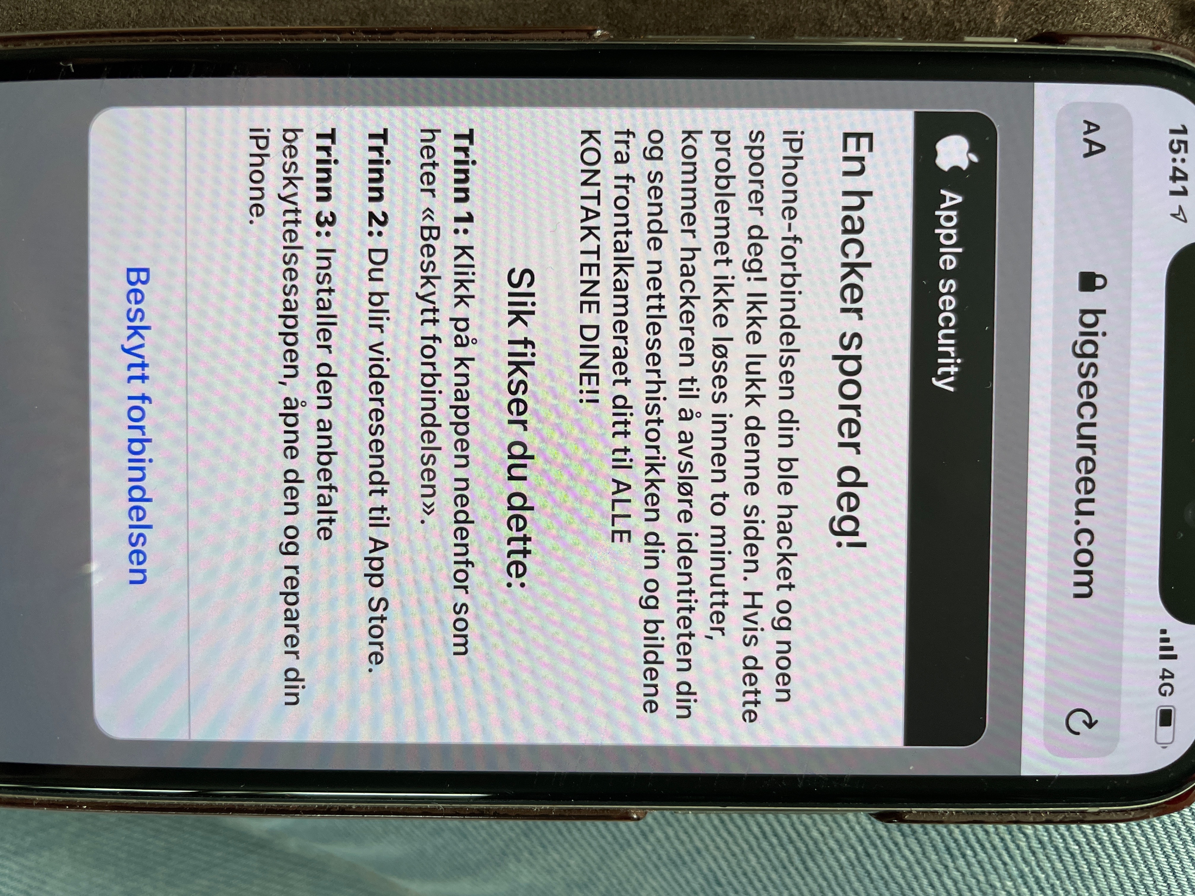 My husband entered a web page and got an Appel security warning. But the web page that was used is bigsecureeu.com and it looks very suspected. Is this Appel or hacked?