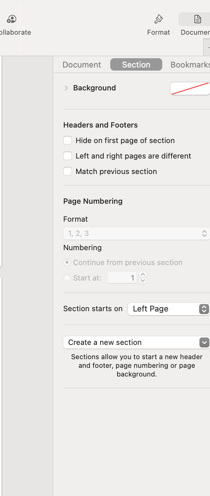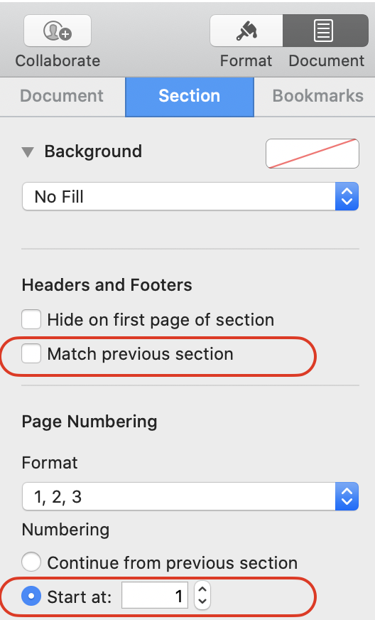 Sections and numbering troubleshooting Mac Pages