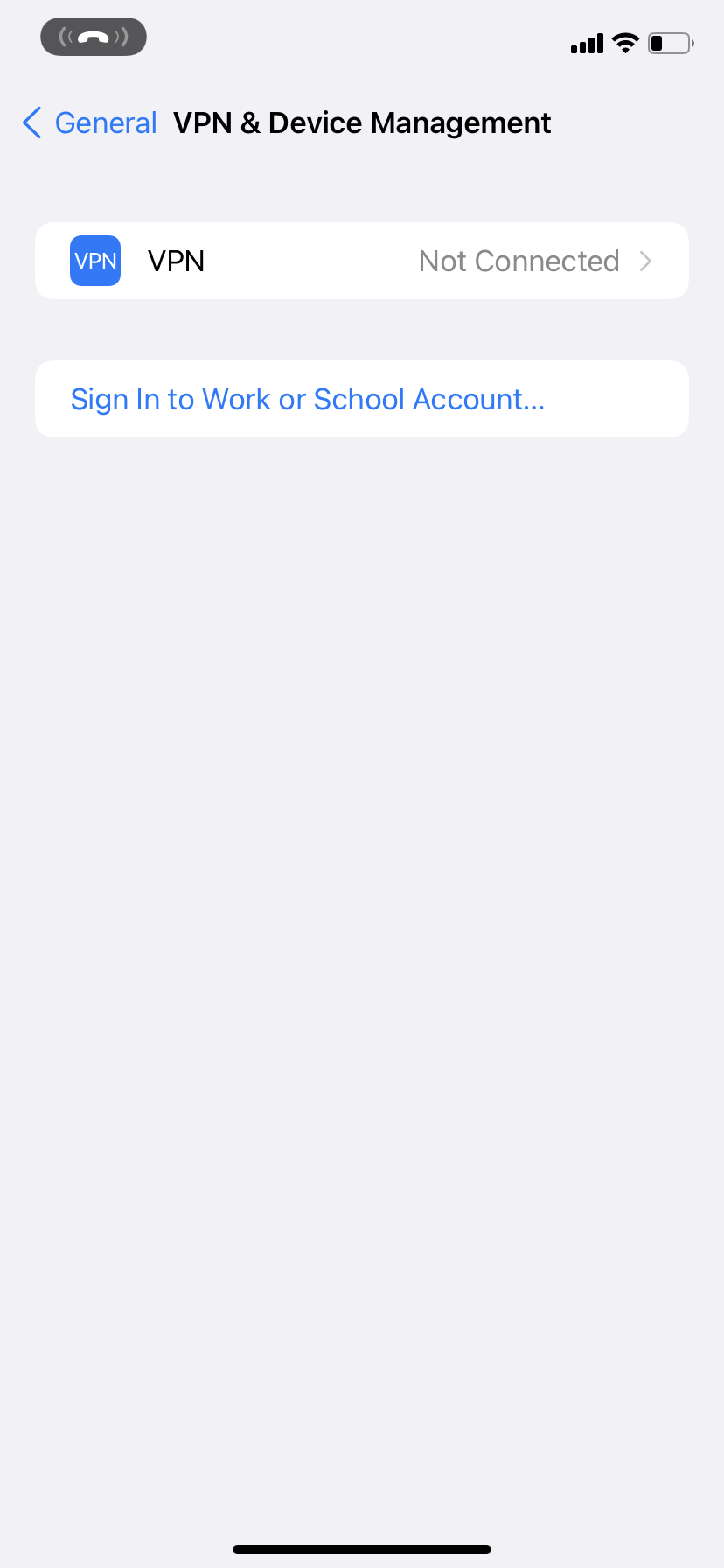 When I go to Settings > VPN & Device Management, same thing.