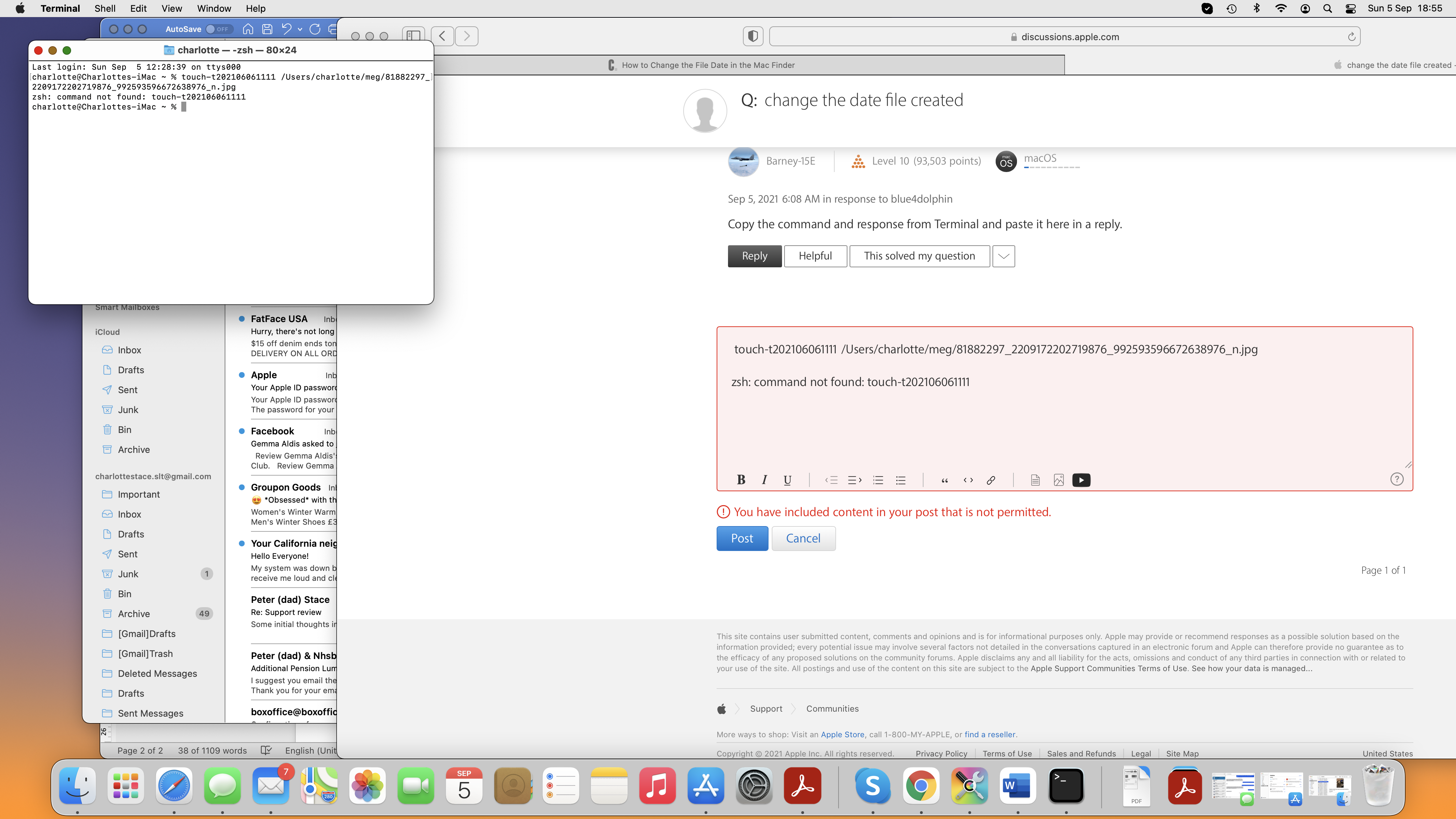 I have big sure and I am trying to change the date a file was created in terminal but it does not recognise the command