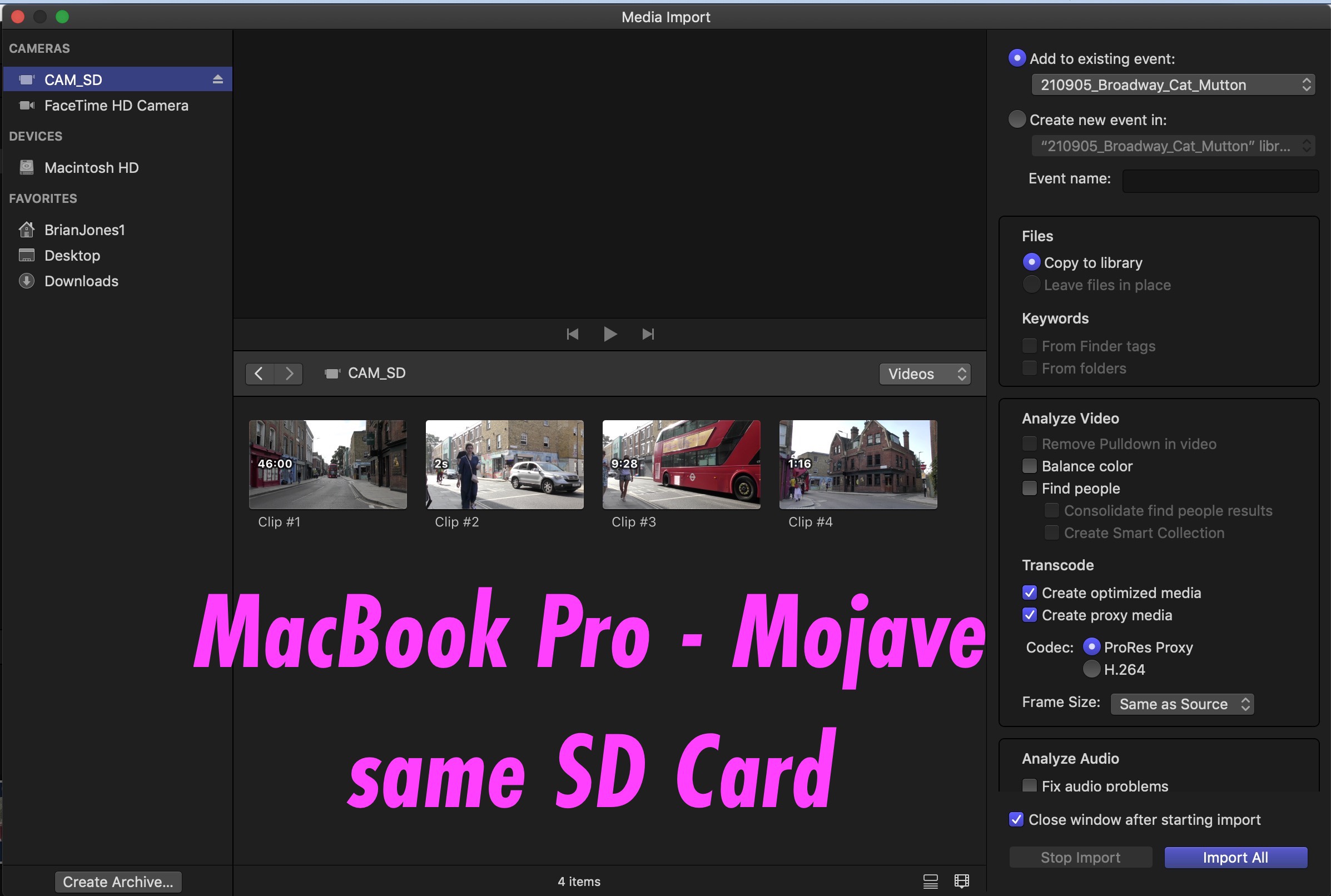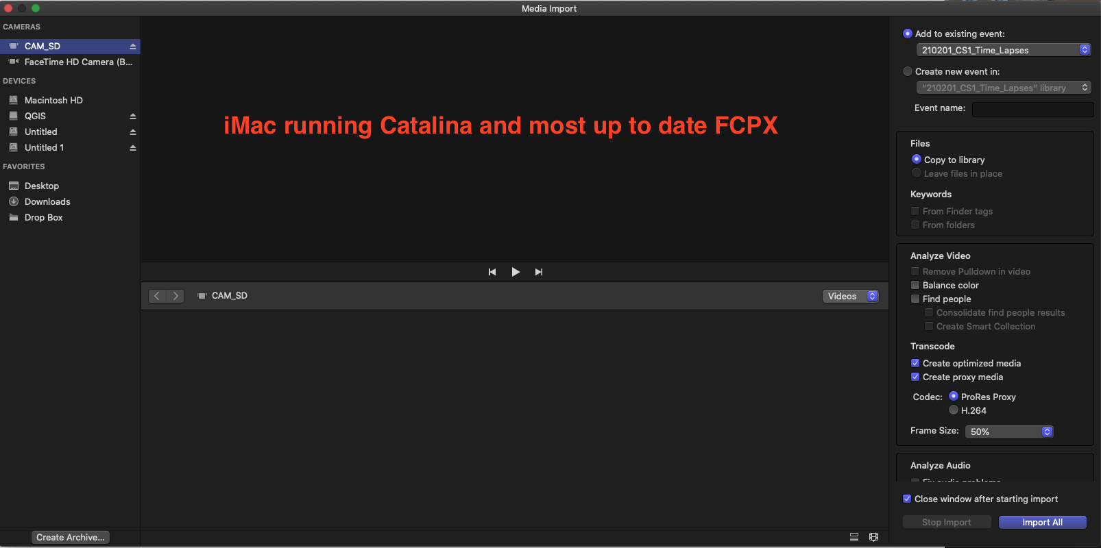 iMac running Catalina and most up to date FCPX does not see the files on the card.