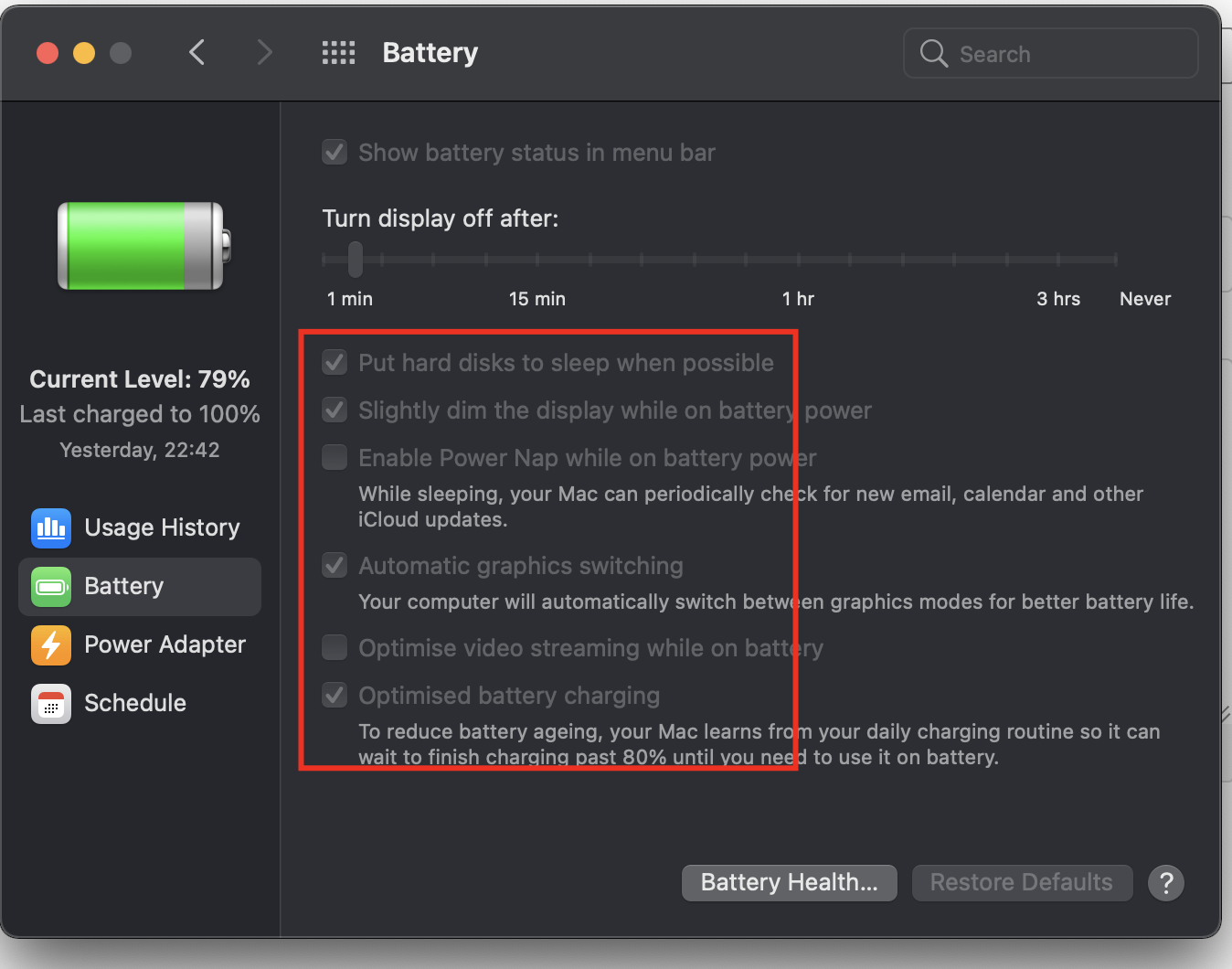Battery options greyed out - MacBook Pro macOS Big Sur 11.5.2