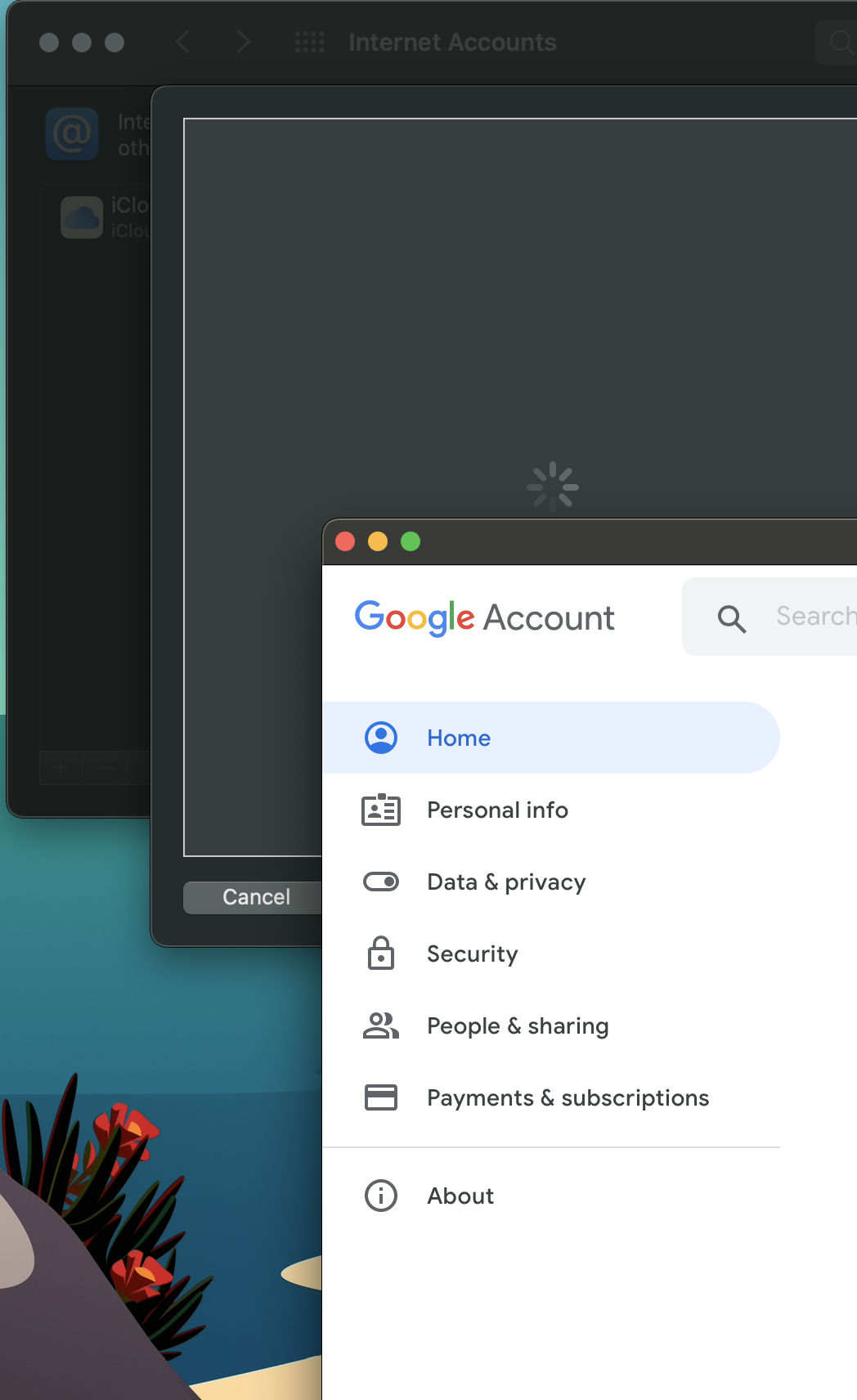 Once I add my user name and password in the small Safari window, it then opens my Google account page.