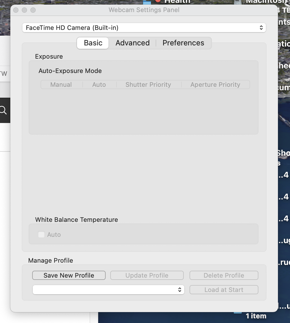 I has a webcam settings app that used to work on previous Macs and no longer works.
