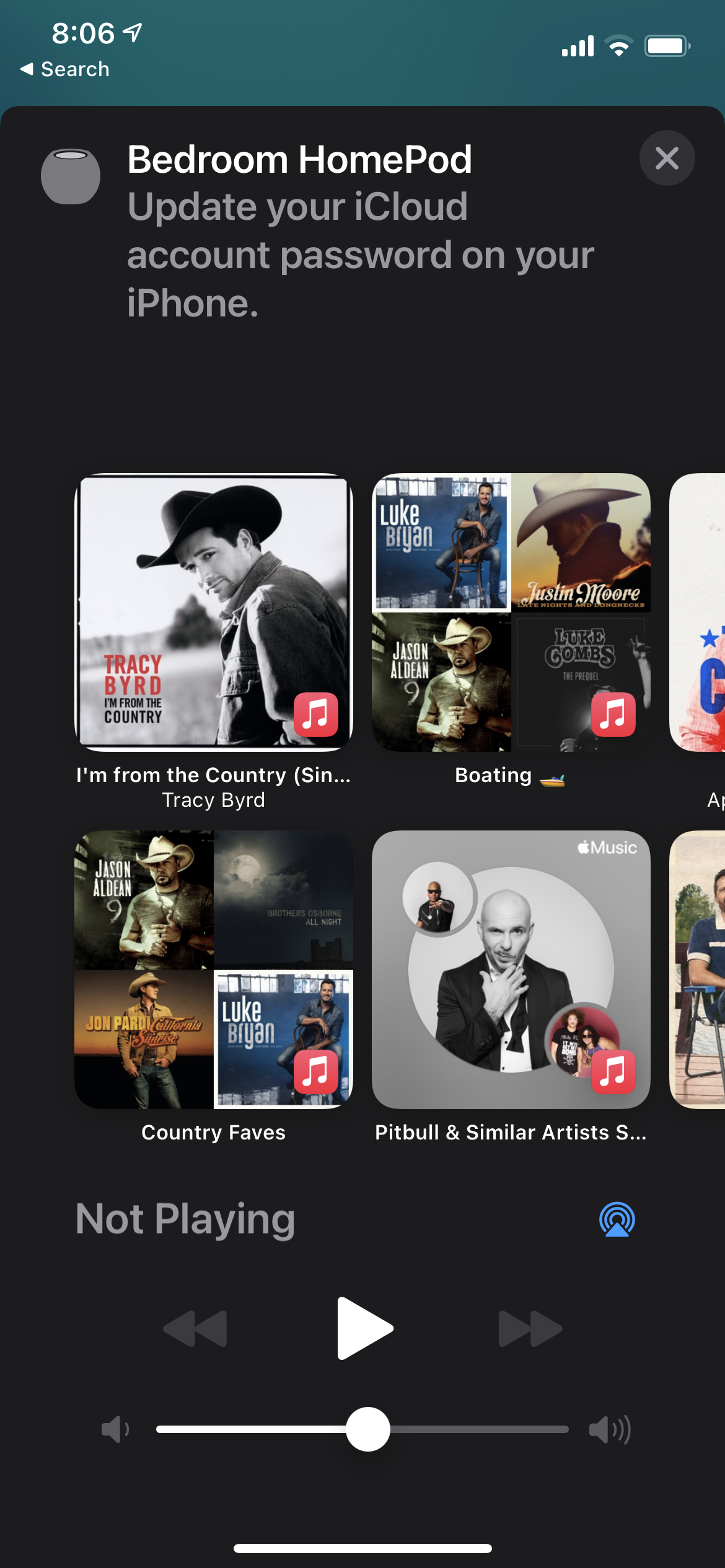 HomePod won’t connect says I need to update my password for iCloud on my phone. It’s been updated.
