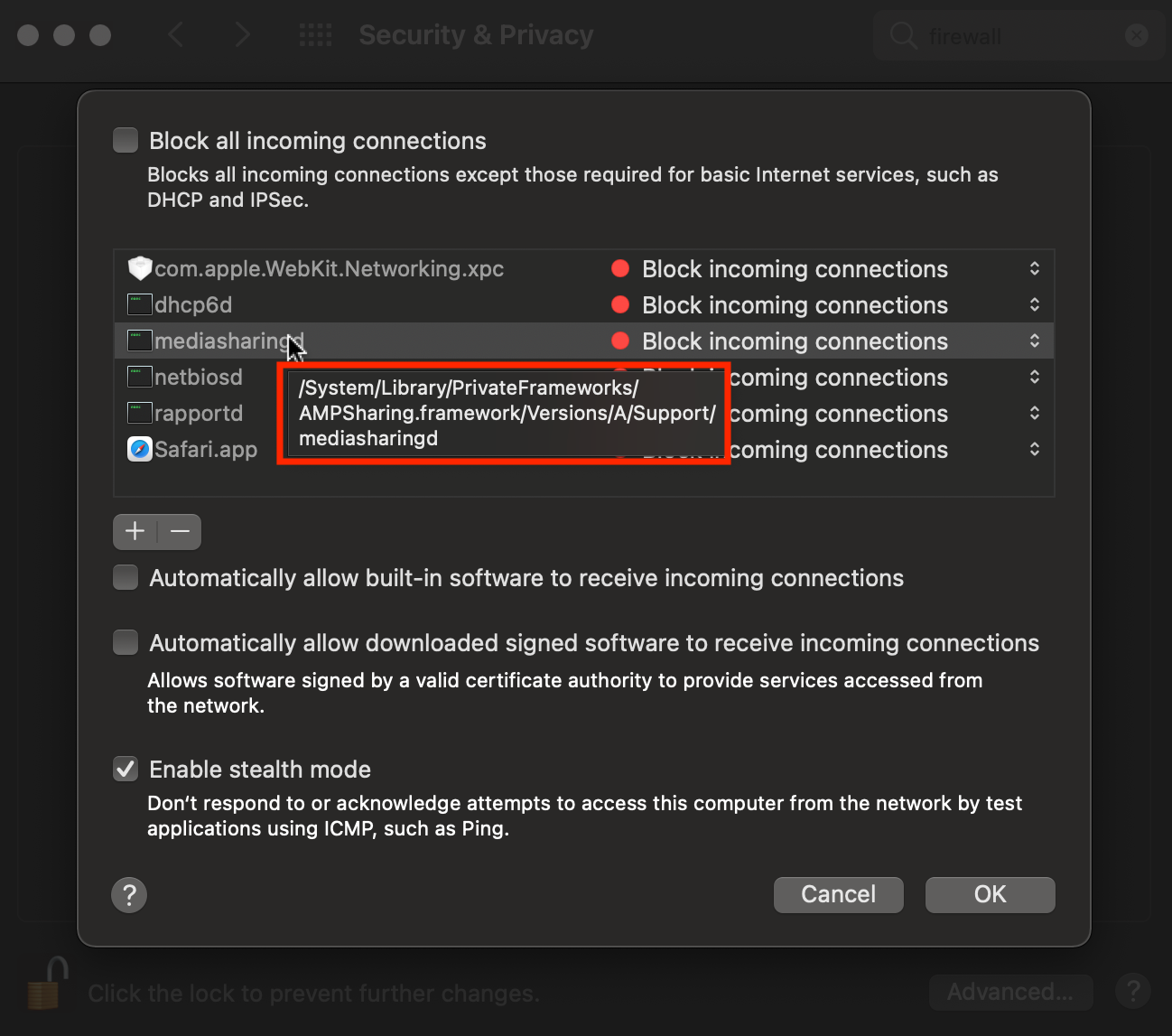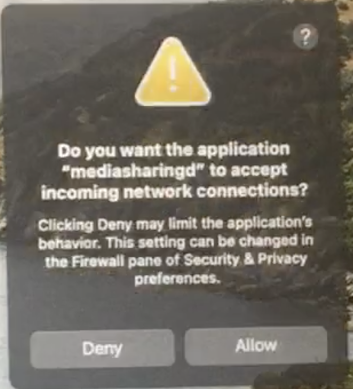 "Do you want the application "mediasharingd" to accept incoming connections?"