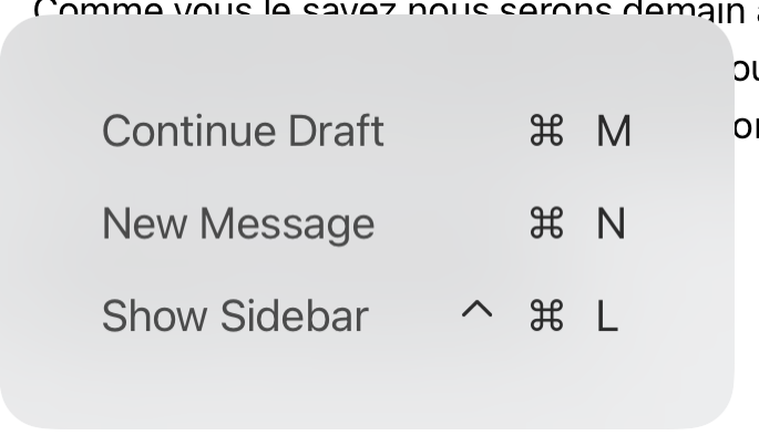 Q1."To be more precise shortcuts activated by the cmd key reduce to only 3 possibilities instead of 14. Trying to move a message (and cancelling without doing so) sometimes restores the full shortcuts."