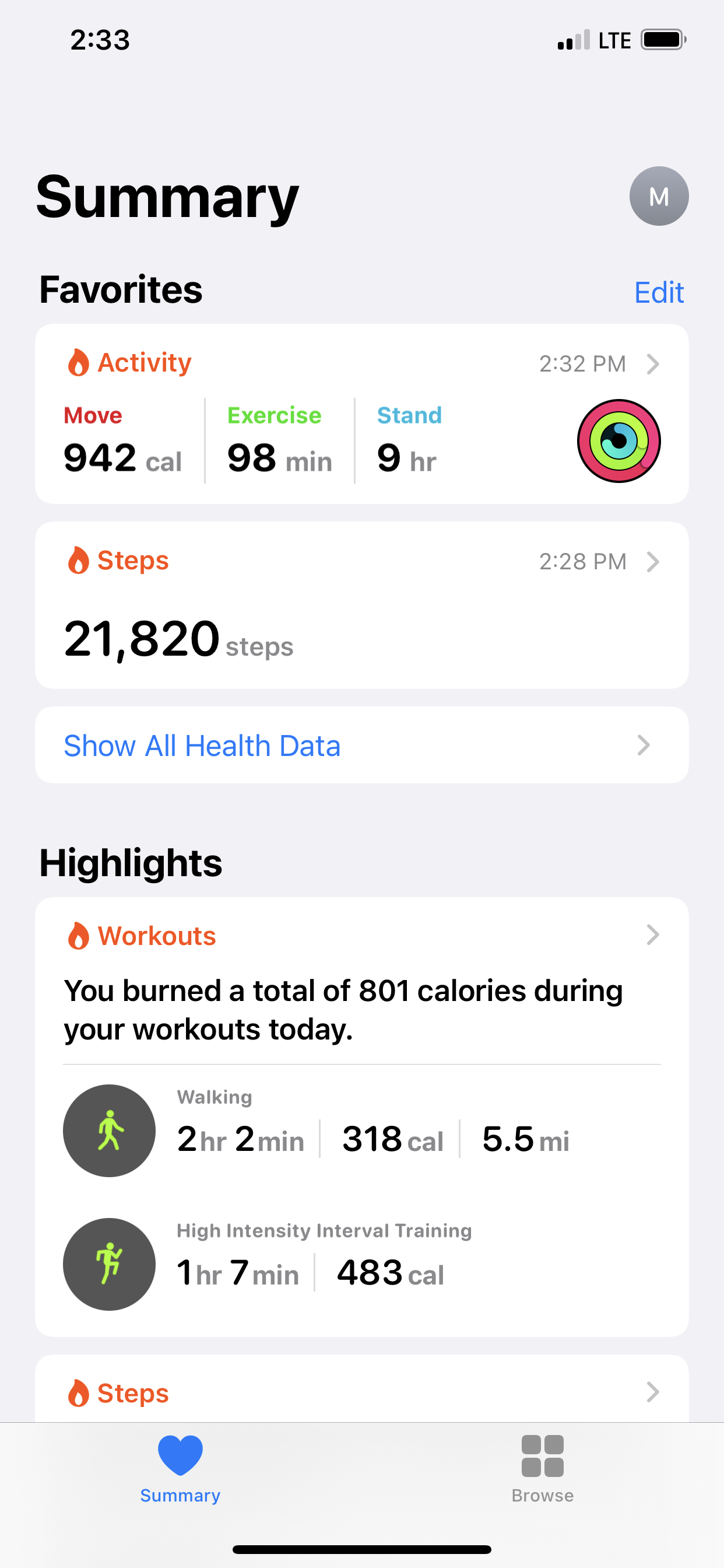 My fitness app shows 2 individual workouts today with the correct duration of each. However the total is only showing partial credit. 67 minutes + 122 minutes = 189 minutes, but the app is only totaling 98 minutes