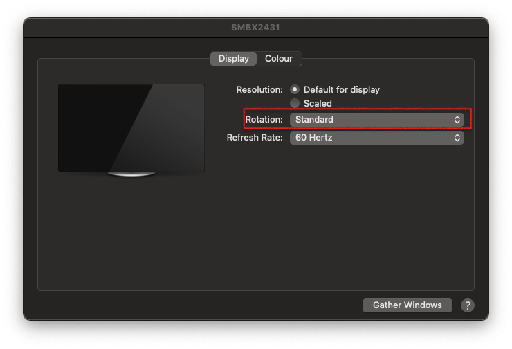 I have a second screen which I have had in portrait mode for more than a year, but suddenly it has returned to landscape mode despite the physical screen being in portrait. I have opened System/Displays preferences and there is no option to rotate the screen any more. How can I rotate the display?