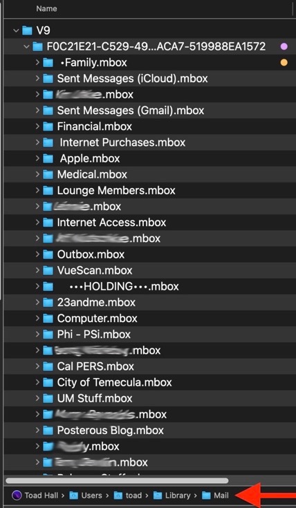 5) If I make a new folder in the "On my Mac" panel of Mail, are all those emails actually saved on my HD somewhere? (I've never looked for them). Where are the On my Mac emails kept?