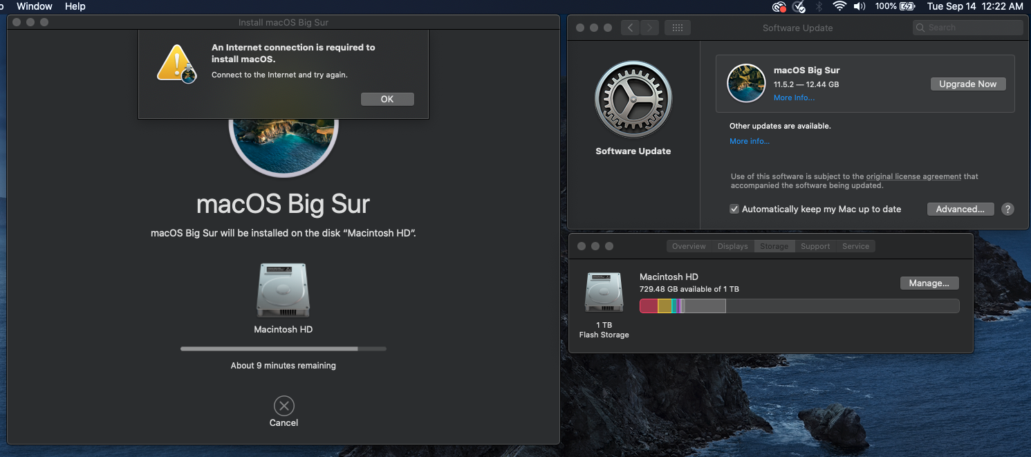 "MacBook Pro (2019) will not update.: My MacBook Pro (2019) will not update. The machine displays an error message stating it needs to be connected to the internet. It is wirelessly connected and I have over 700 GB available on the hard drive. It is running maOS Catalina.Can anyone explain what is going on?"