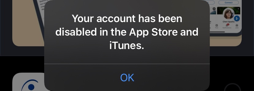 If you see a message that says "Your account has been disabled in the App Store and iTunes" or "You cannot login because your account has been locked", click here and read what to do ➞ https://support.apple.com/HT208856