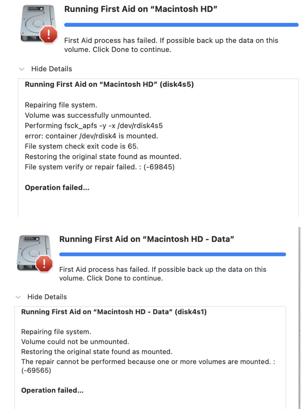 After installing the external drive, OWX Envoy Pro SX, I ran First Aid on the Fusion Drive on my iMac. Context: sluggishness had been present. Per this Forum's suggestions, EtreCheck was run multiple times, as I "cleaned" till it seemed ready to install the SSD as an external drive.) First Aid revealed the Fusion drive "has failed".