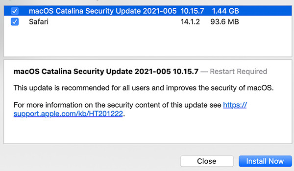 How do I download the latest Security Update 2021-005 Catalina to my iMAC?