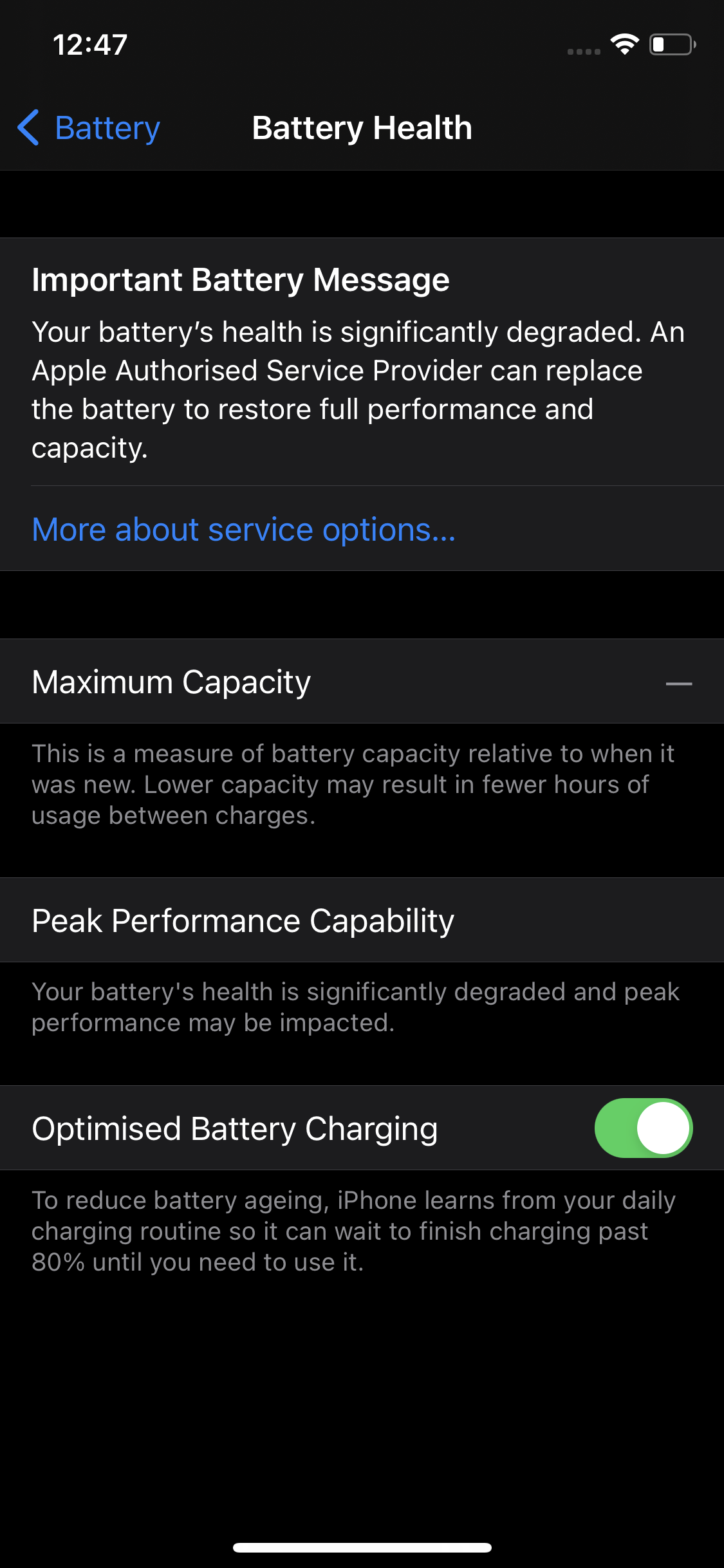 Why my battery health on service?