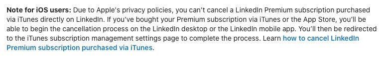 I am unable to cancel my LinkedIn premium subscription via my iPhone because I did not see the “cancel subscription” option