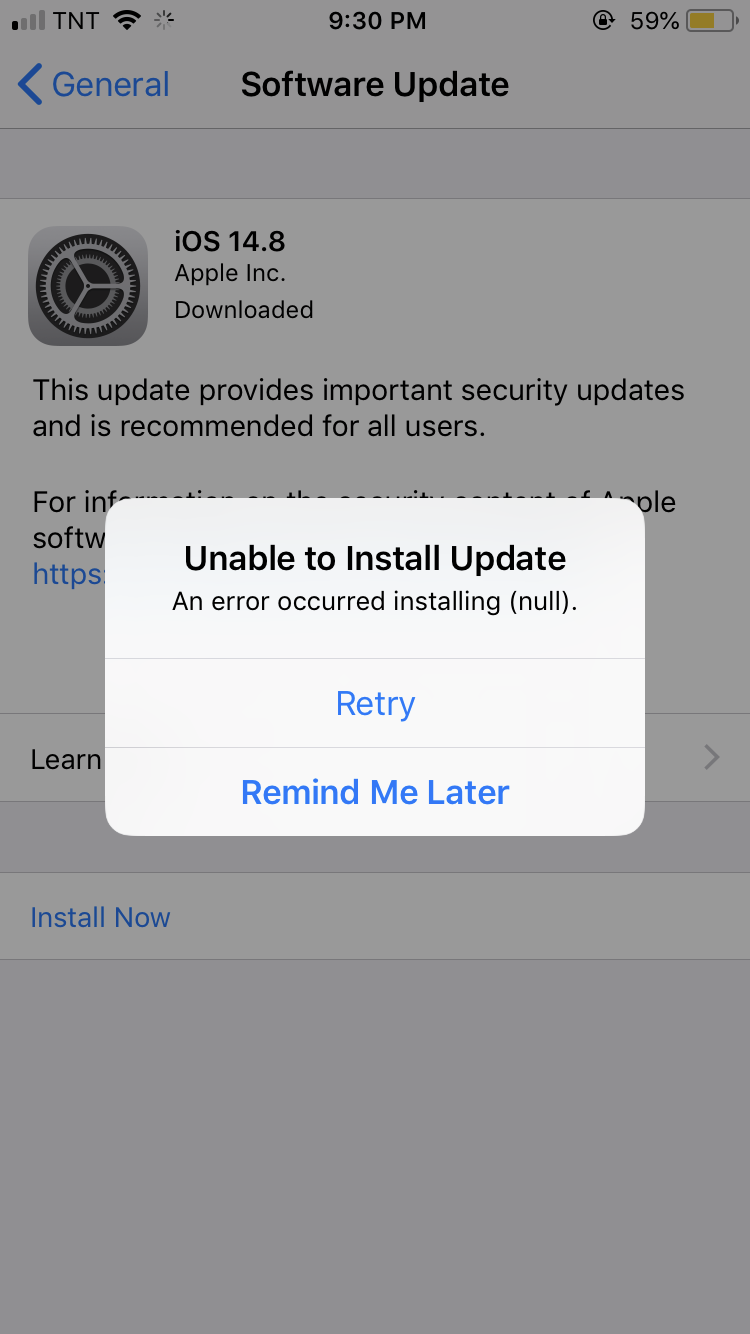 When I was updating my phone it says that I am unable to install the new software on my phone. What should I do?
