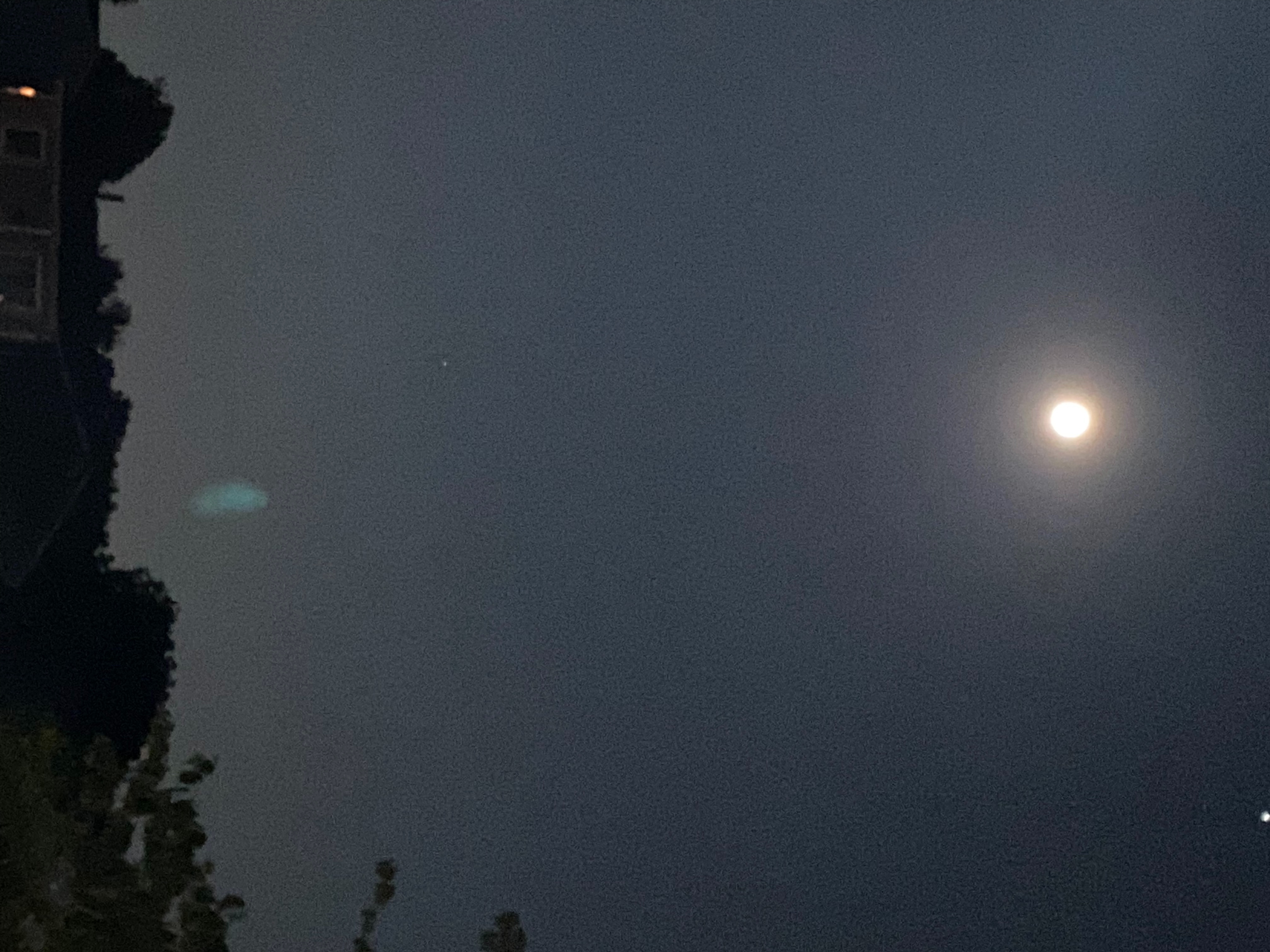 When I take pictures of the moon at night. I am getting blue unknown images in the photo. They are all different shapes and sizes.
